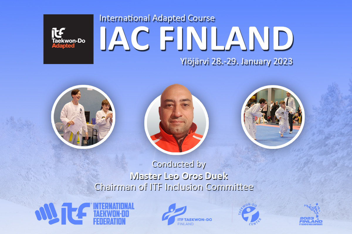 Meillä on ilo ja kunnia kutsua teidät ITF:n, Suomen ITF Taekwon-Don ja Taekwon-Do Centerin yhteistyössä järjestämälle kansainväliselle sovelletun Taekwon-Don seminaarille (International Adapted Course) Ylöjärvelle 28.-29.1.2023.