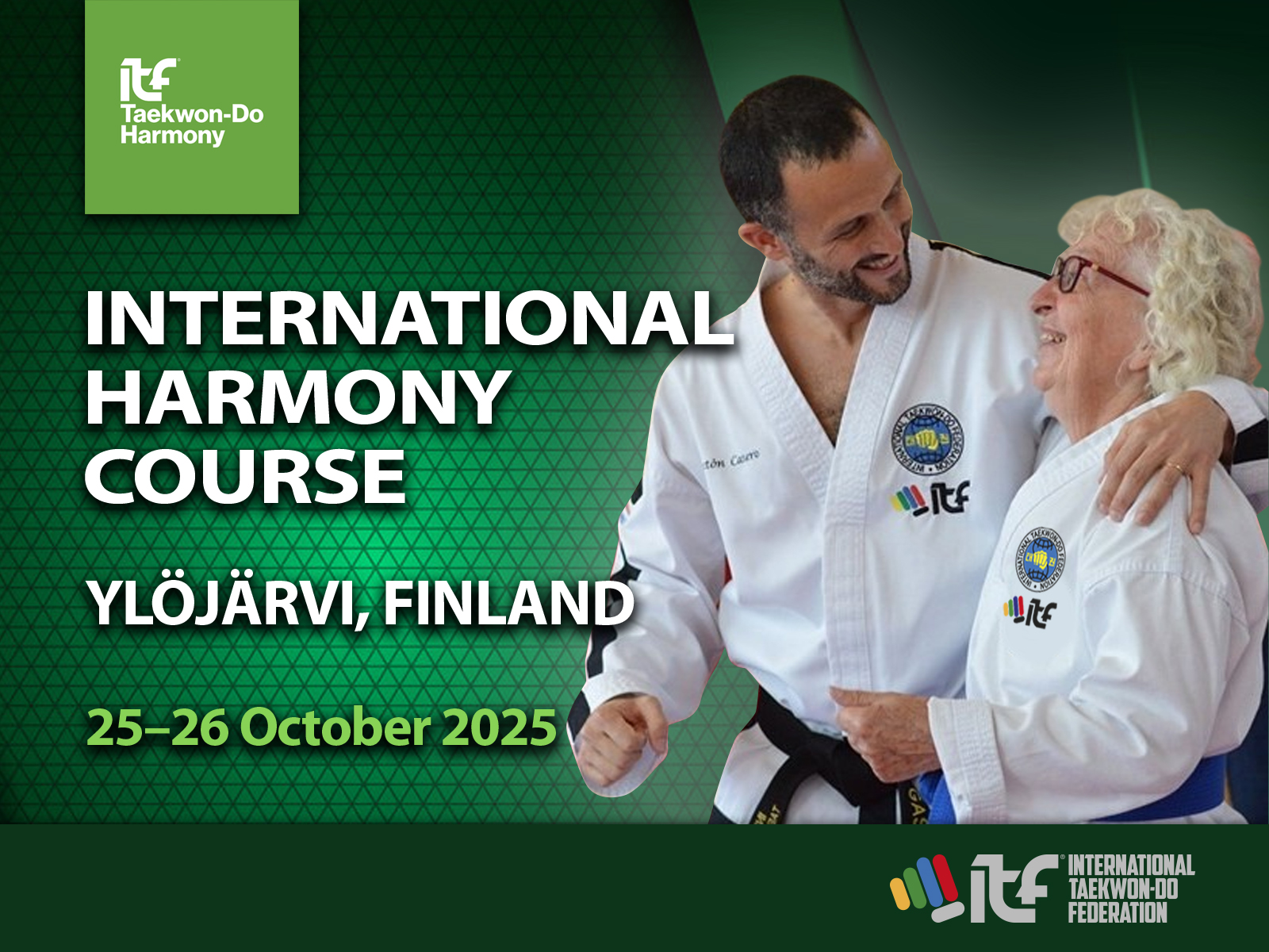 We are proud to invite you to the International Harmony Course, Taekwon-Do adapted for older adults, in Ylöjärvi, Finland, on October 25 to 26, 2025. The course is organized by ITF Taekwon-Do Finland and Taekwon-Do Center, in cooperation with the International Taekwon-Do Federation.