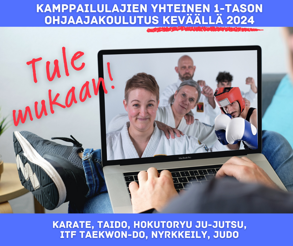 Keväällä 2024 järjestetään kamppailulajien yhteinen 1-tason ohjaajakoulutus eli VOK 1, jossa mukana ovat taekwon-do, karate, taido, hokutoryu ju-jutsu, nyrkkeily ja judo. Viimeinen ilmoittautumispäivä on 26.2, joten olethan nopea varmistaaksesi paikkasi.