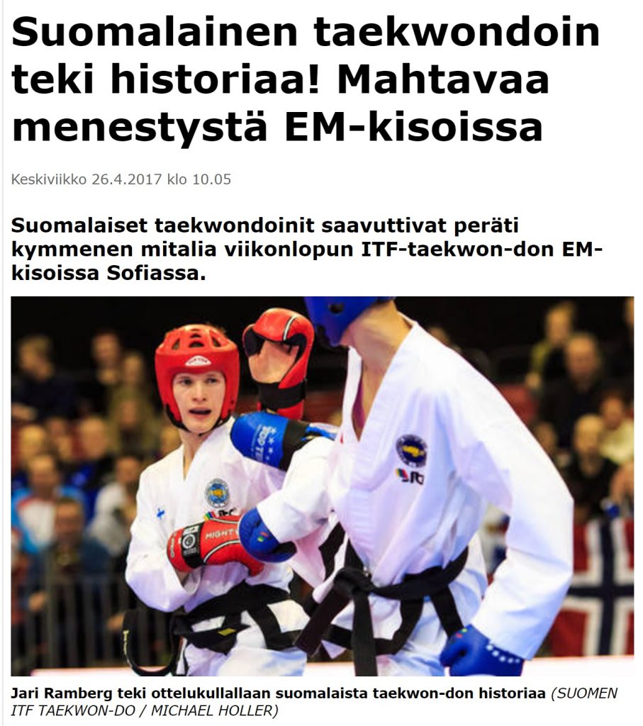 Suomalainen taekwondoin teki historiaa! Mahtavaa menestystä EM-kisoissa – Iltalehti, 26.4.2017
