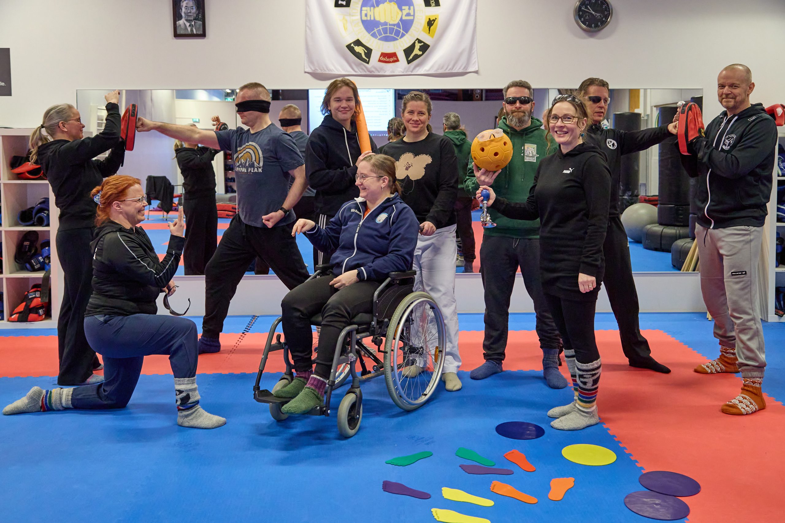 V: Siitä on varmaan reilu 11 vuotta, kun ensimmäistä kertaa asiasta puhuttiin. Hieman vaati mietintää, koska ajattelin lajin aikuisiällä aloittaessani, että ainoastaan harrastan, enkä sekaannu seuratyöhön. Kymmenen vuotta sitten aloitettiin Ylöjärven Taekwon-Do Centerissä sovelletun nykyisin soveltavan Taekwon-Don ryhmä. Olin jo vuosikymmeniä toiminut eri rooleissa pararatsastuksen parissa, joten ajatus kaikille avoimesta lajista ei ollut ollenkaan vieras.