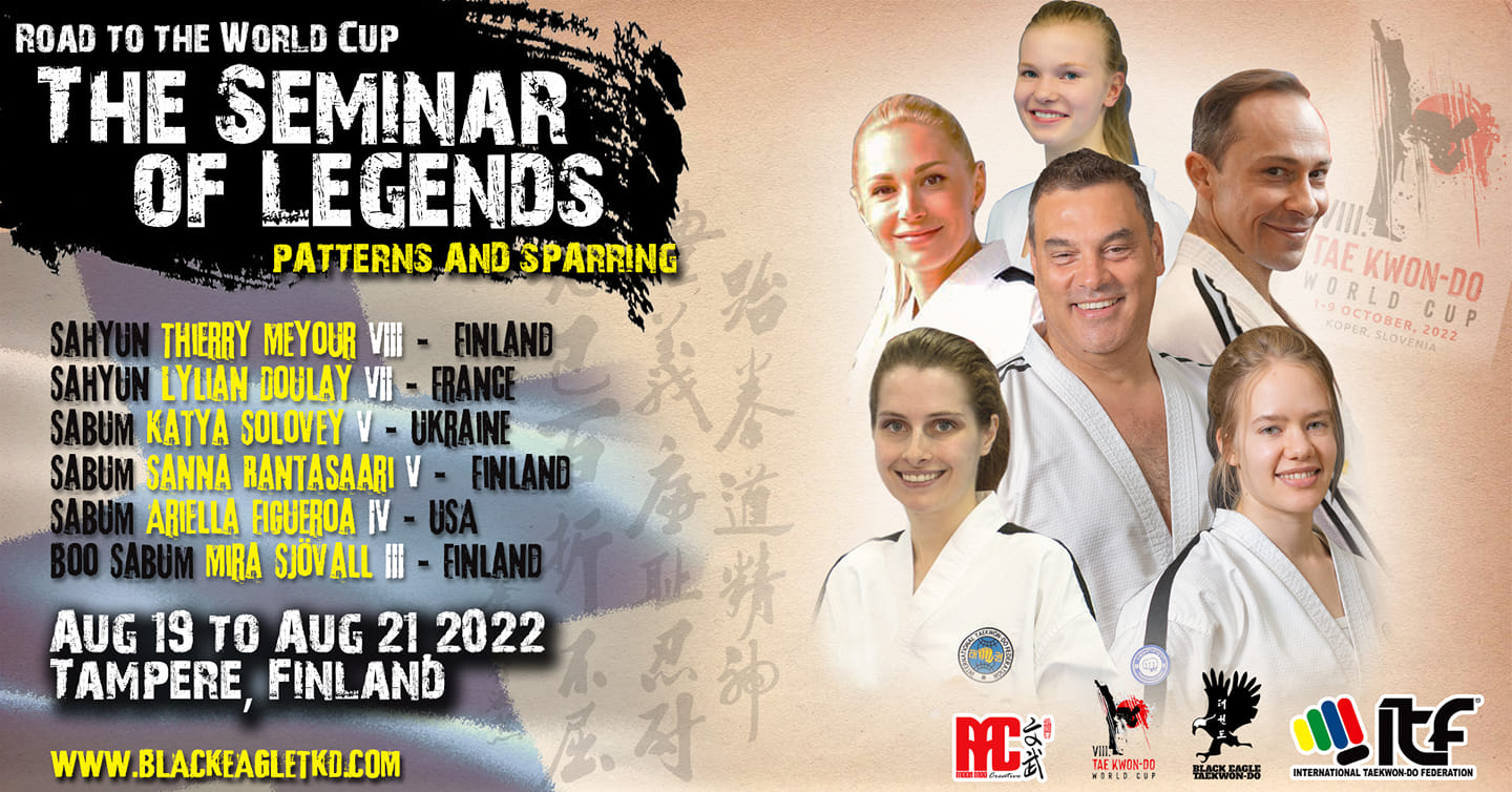 ITF Taekwon-Don World Cup -kilpailut kilpaillaan Koperissa, Sloveniassa 1.-9.10.2022 ja niiden hengessä Black Eagle Taekwon-Do järjestää liikesarjoihin ja otteluun keskittyvän Road to the World Cup – The Seminar of Legends -seminaarin Tampereella (Black Eagle Dojang, Ahertarjankatu 9, Tampere) 19.-21.8.2022.
